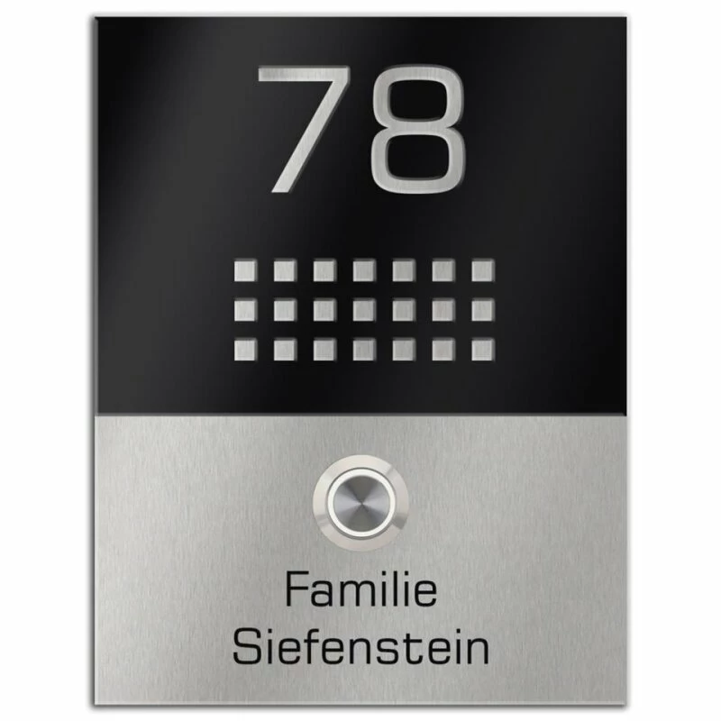 Design Edelstahlklingel 170x220mm mit Acrylglas schwarzmatt