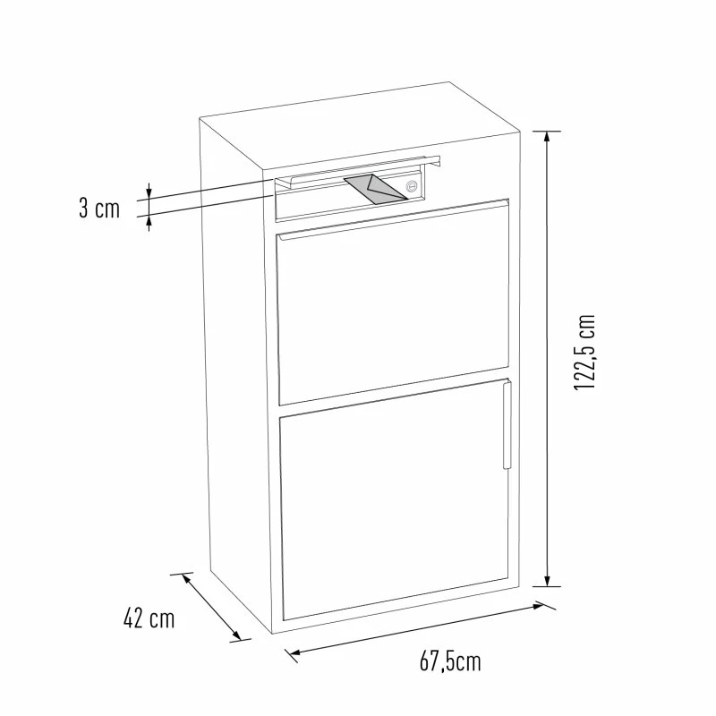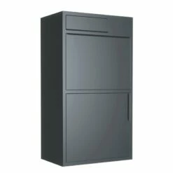 Die Paketbox ist ein freistehender Einzelbriefkasten mit integriertem Paketfach zur Bodenmontage.