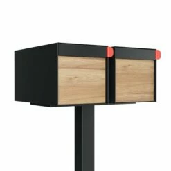 Als freistehender Doppelbriefkasten eignet er sich für die Bodenmontage auf freier Fläche. Einwurf und Entnahme erfolgen an der Vorderseite über eine massive Frontklappe und ein dahinterliegendes Innentor mit integriertem Einwurfschlitz und Schloss. Das Besondere: Der eingriffsichere Schlitz ermöglich den Einwurf kleiner Päckchen. Die massive Frontklappe schützt das Innentor vor Witterung und lässt sich als stilistisches Element individuell gestalten.