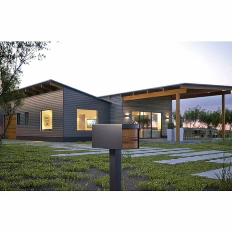 Als freistehender Doppelbriefkasten eignet er sich für die Bodenmontage auf freier Fläche. Einwurf und Entnahme erfolgen an der Vorderseite über eine massive Frontklappe und ein dahinterliegendes Innentor mit integriertem Einwurfschlitz und Schloss. Das Besondere: Der eingriffsichere Schlitz ermöglich den Einwurf kleiner Päckchen. Die massive Frontklappe schützt das Innentor vor Witterung und lässt sich als stilistisches Element individuell gestalten.