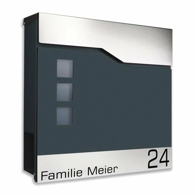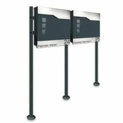 Doppel Standbriefkasten Set in ANTHRAZIT RAL 7016 pulverbeschichtet mit Edelstahlbeschriftungsapplikation