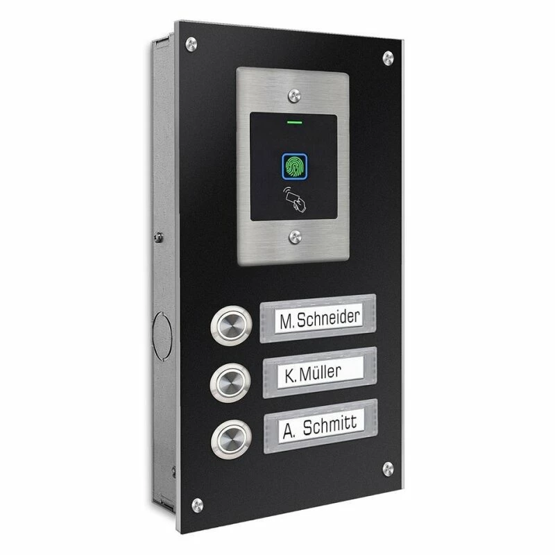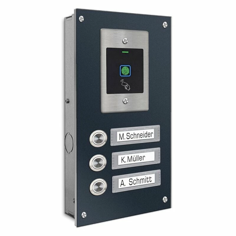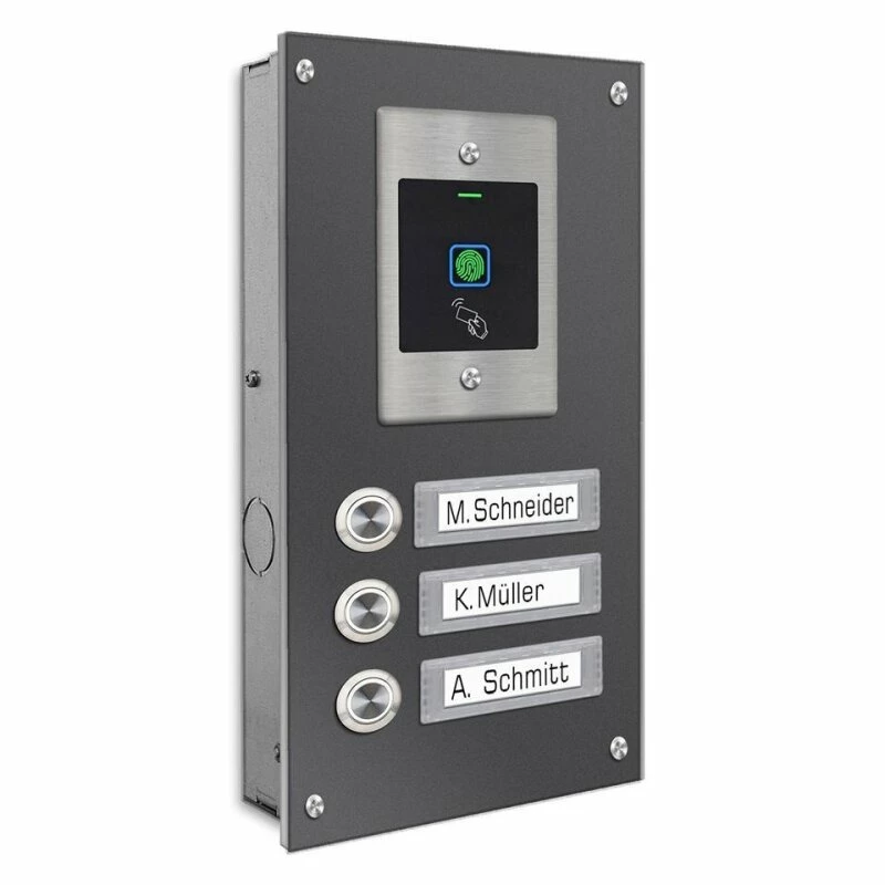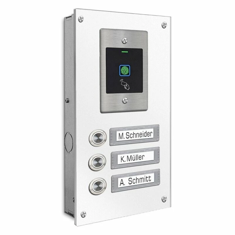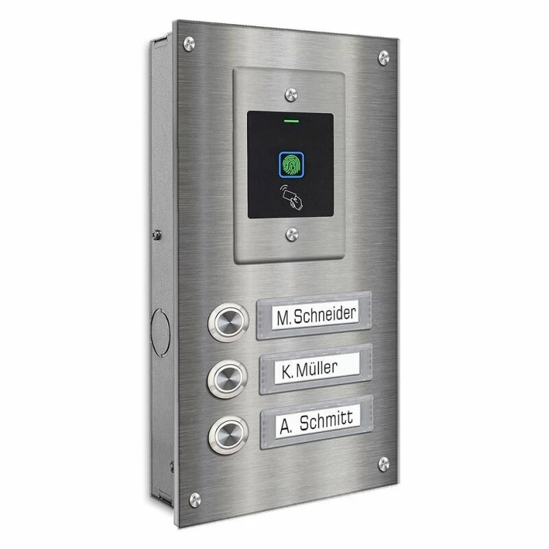 Edelstahl Dreifamilien Türklingel mit Fingerprint Zugangssystem incl. 5 RFID Keys