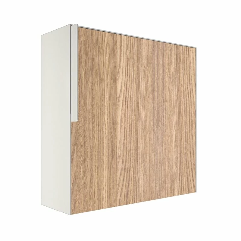 Farbe: Weiß RAL 9016 mit Holzdekor-Front