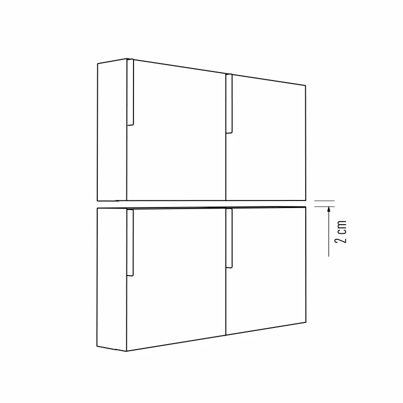 Bei der Montage von Briefkästen untereinander, muss ein Abstand von 2 cm zur oberen Reihe eingehalten werden.
