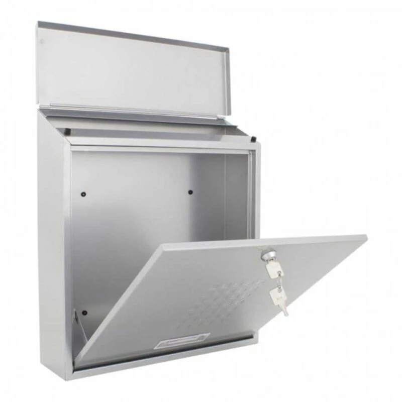 Der silberne Briefkasten Bolzano begeistert mit seinem hochwertigen Material und der klassischen Bauweise. Mit einer abgeschrägten Klappe und dem zarten karierten Muster an der Tür wirkt sein Design zeitlos elegant. Die Tür mit dem untenliegenden Anschlag und Sichtfenster mit Namensschild lässt sich durch das Zylinderschloss leicht öffnen. Zur einfachen Montage befinden sich das passende Montagematerial im Lieferumfang.