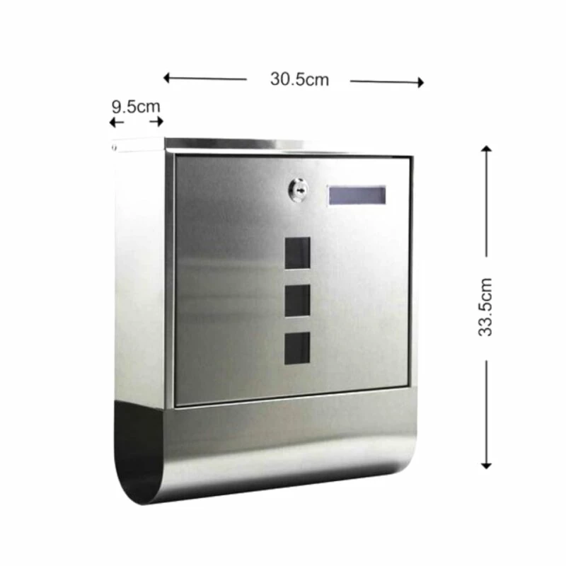 Dieser elegante Briefkasten aus hochwertigem Edelstahl überzeugt durch sein stilvolles Design. Mit seinen 30,5 x 9,6 x 33,5 cm (B x T x H) nimmt er kaum Raum ein, bietet dabei jedoch viel Platz. Denn durch die Einwurföffnung passen selbst Briefe mit der Größe 245 x 35 mm. Zusätzlich verfügt dieser Briefkasten über eine praktische Zeitungsrolle. Dadurch können Zeitungen einfach gerollt und in dem Rohr abgelegt werden. Vorbei sind die Zeiten, in denen die Zeitung in die Einwurföffnung gequetscht wurde und es keinen Platz für die restliche Post gab. Selbst wenn Sie mal verreist sind, bietet der Briefkasten genügend Stauraum für Ihre Briefsendungen.