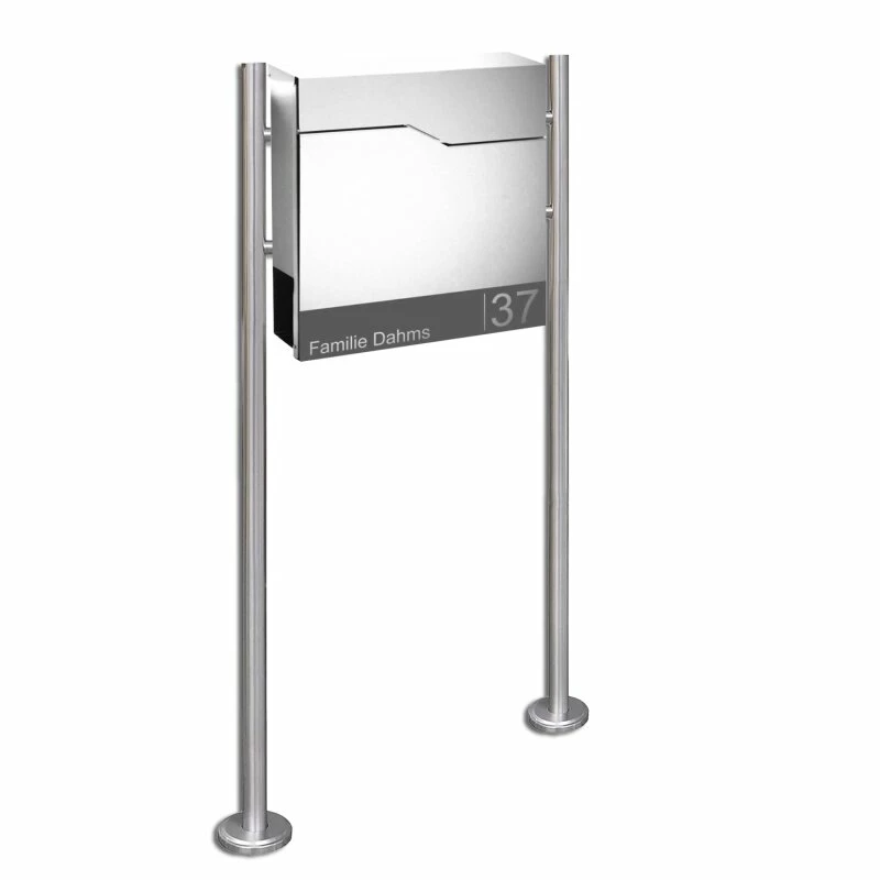 Edelstahl Briefkasten Standbriefkasten Mailbox mit Zeitungsfach & Beschriftung Torben