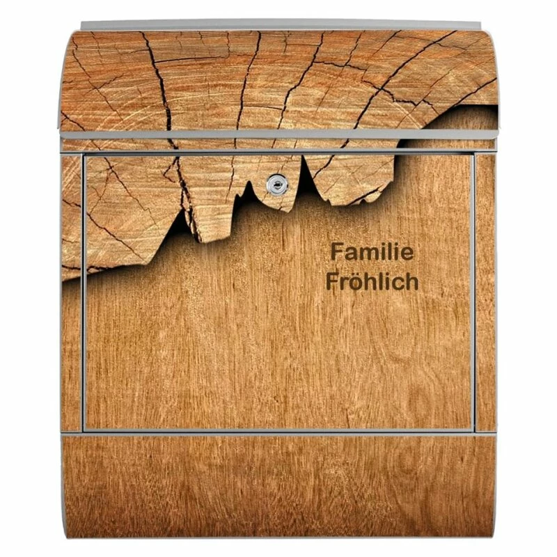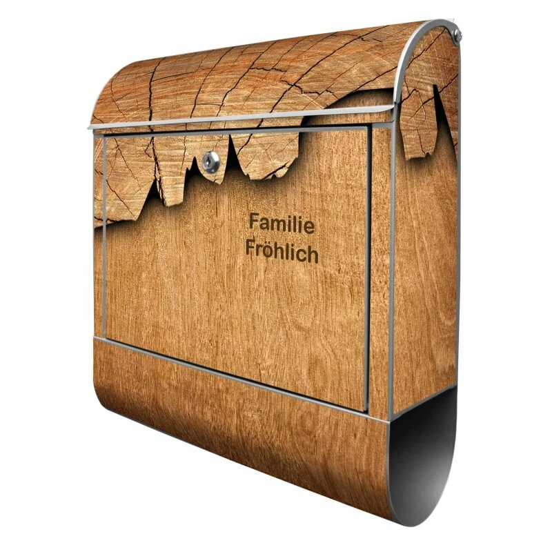 Der Postkasten mit Motiv Holz hat ein sehr ansprechendes und ausgefallenes Design, damit entlocken Sie Ihren Nachbarn und dem Postboten ein Lächeln. Heben Sie sich von der tristen grauen Masse ab ohne auf Funktionalität zu verzichten.
