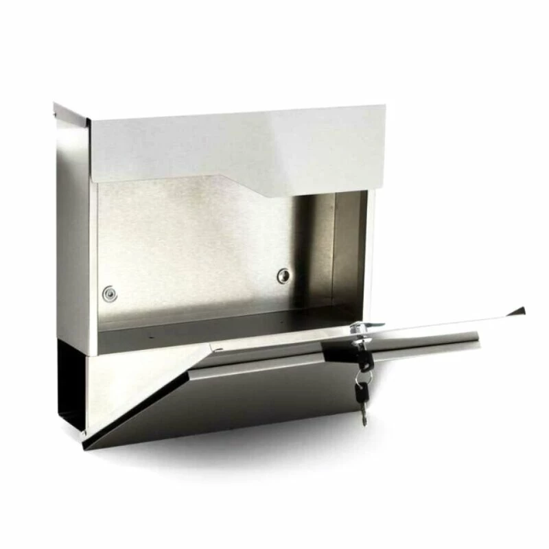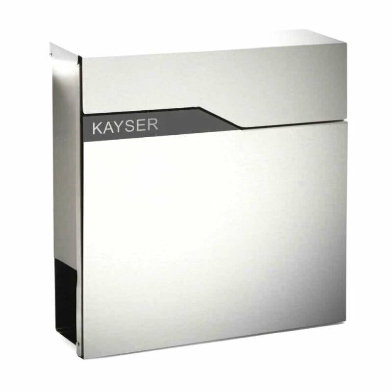 Eleganter Edelstahl Briefkasten mit Beschriftung. Dieser macht einen sehr hochwertigen Eindruck.