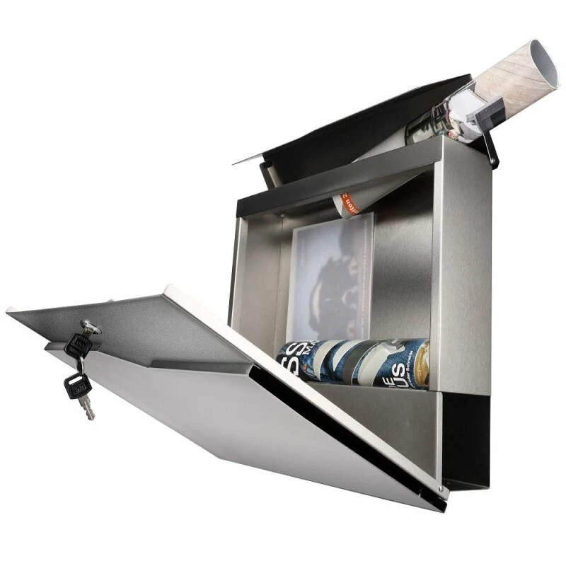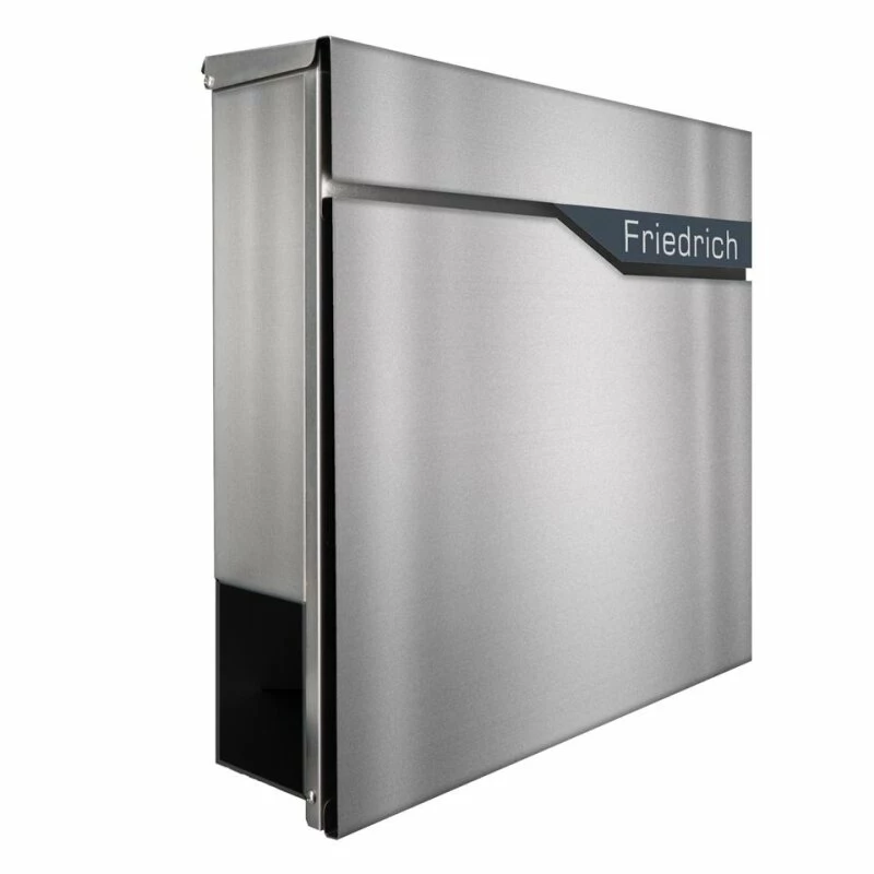 Eleganter Edelstahl Briefkasten mit Beschriftung. Dieser macht einen sehr hochwertigen Eindruck.