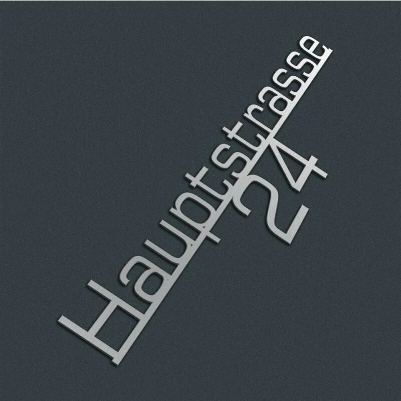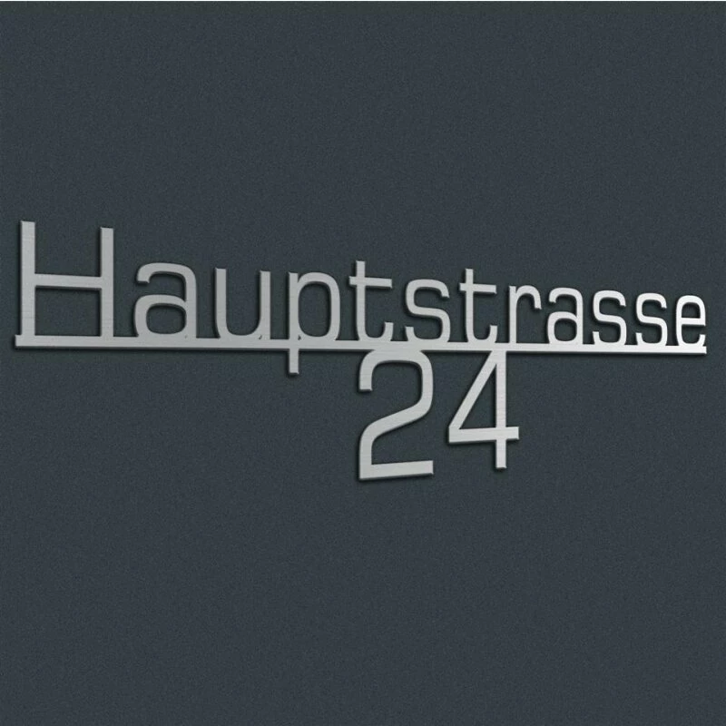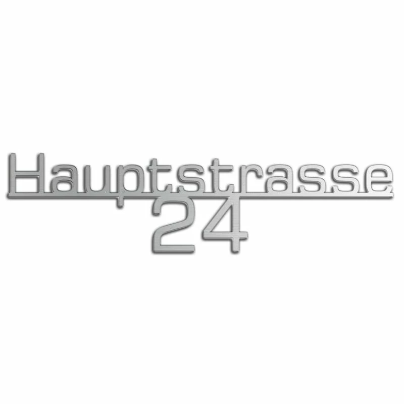 Edelstahl Schriftzug Kombination aus Strassennamen und Hausnummer TYP3