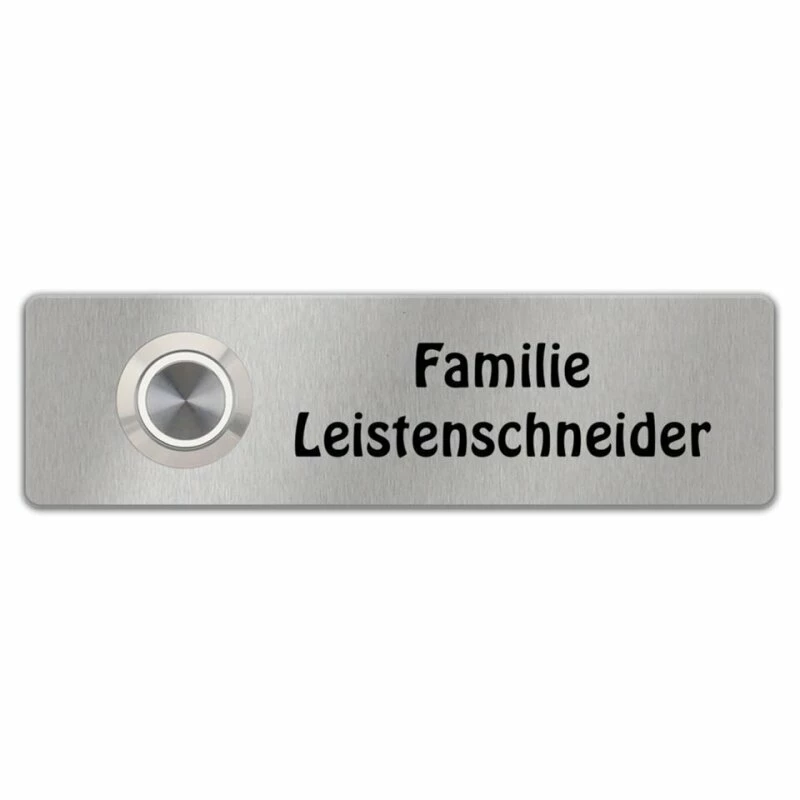 Mit diesem schmalen Klingelschild aus Edelstahl bekommen Sie eine sehr moderne und elegante Haustürklingel, die ideal geeignet ist für Einfamilienhäuser. Der Klingeltaster wird nach Einbruch der Dämmerung dank einer LED Ringbeleuchtung hervorgehoben. Dadurch findet Besuch zu jeder Tageszeit zu Ihnen. Ihr Beschriftung wird über eine CO2-Laserbeschriftung in die Klingelplatte eingebracht. Diese Haustürklingel ist aufgrund der hochwertigen Verarbeitung gegen Wind und Wetter geschützt.