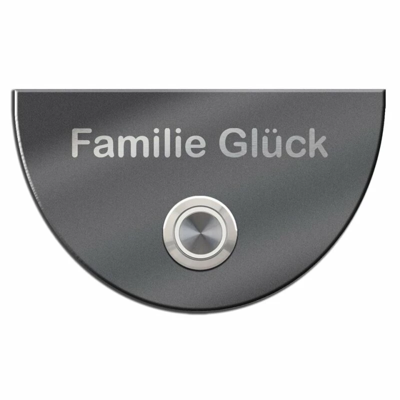 Edelstahl Türklingel mit LED und Gravur halbrund by Zalafino