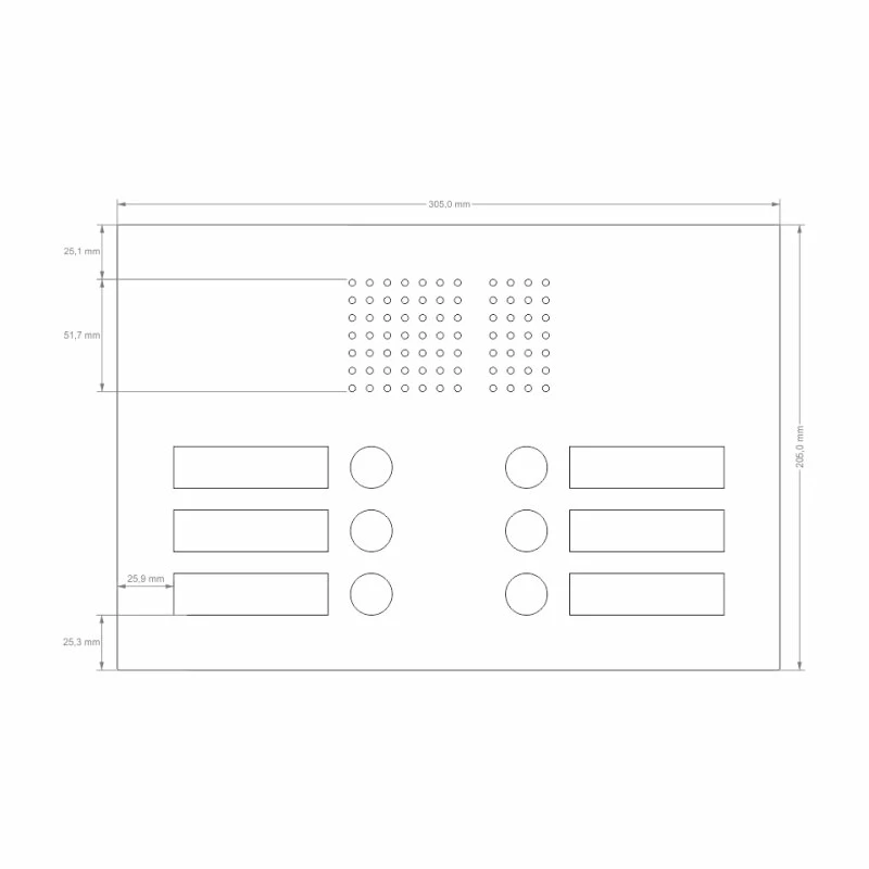 Edelstahl Unterputz Sechsfamilien Türklingel quer 305x205mm
