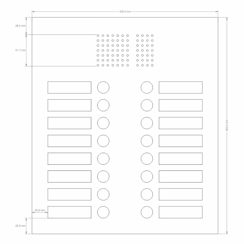 Edelstahl Unterputz Sechszehnfamilien Türklingel quer 305x355mm