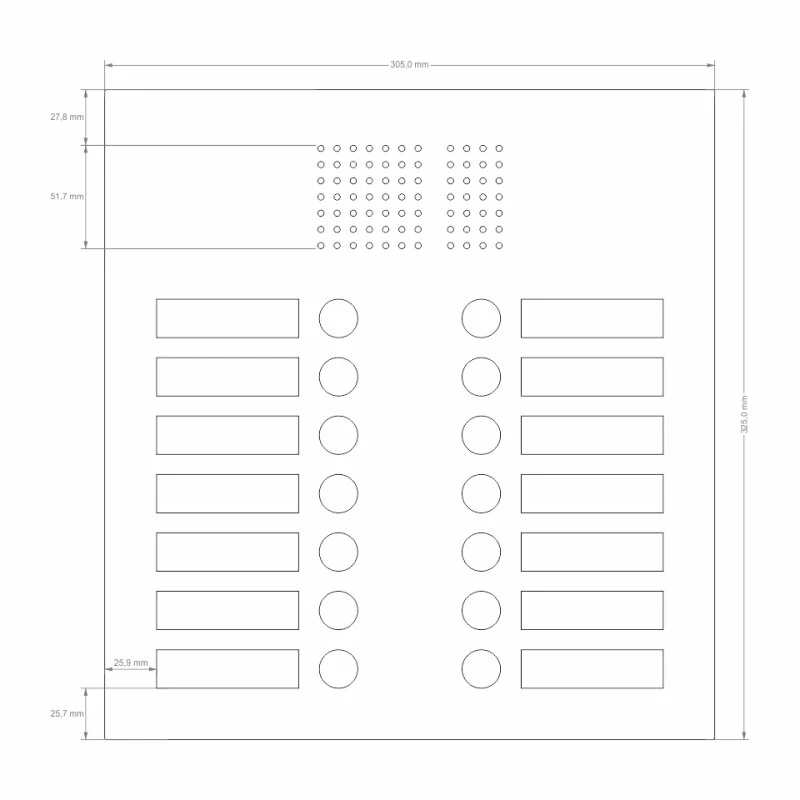 Edelstahl Unterputz Vierzehnfamilien Türklingel quer 305x325mm