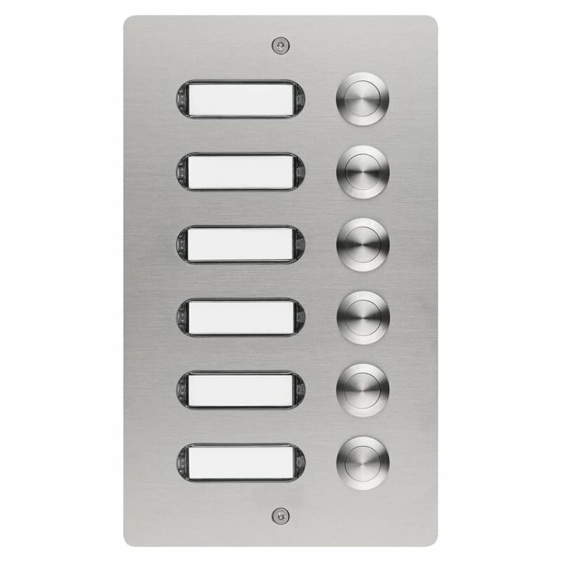 Edelstahl Unterputztürklingel eckig für sechs Wohneinheiten inklusive UP-Kasten