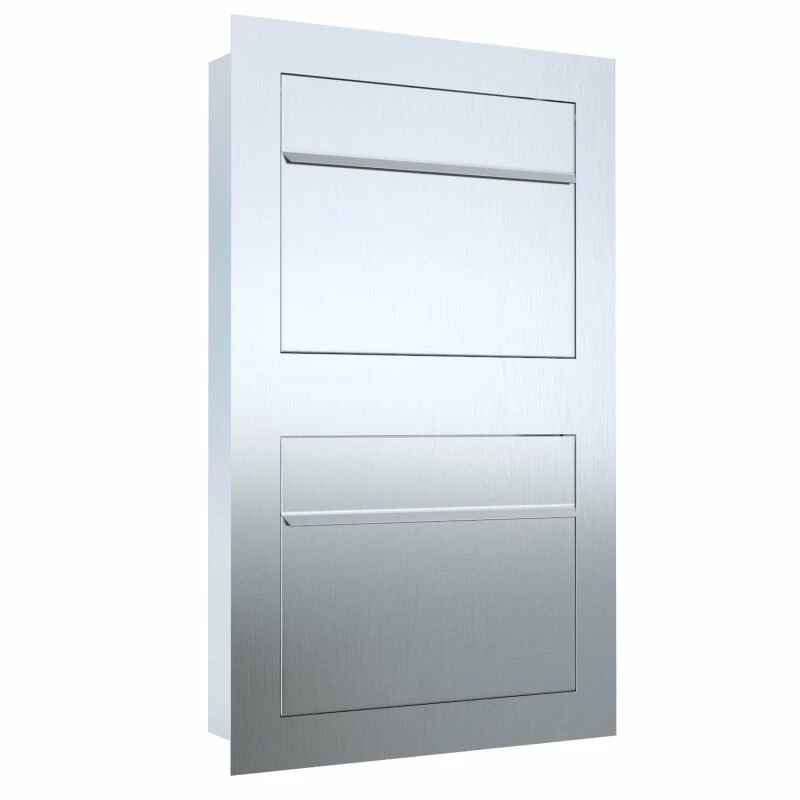 Einbaubriefkasten Hochkant aus Edelstahl 2 Parteien