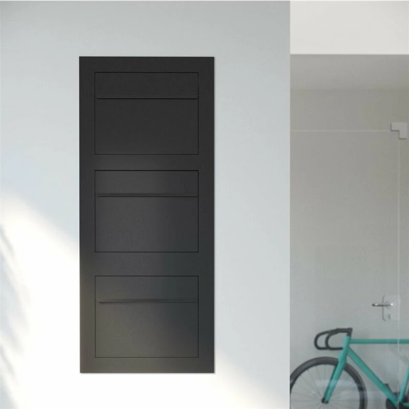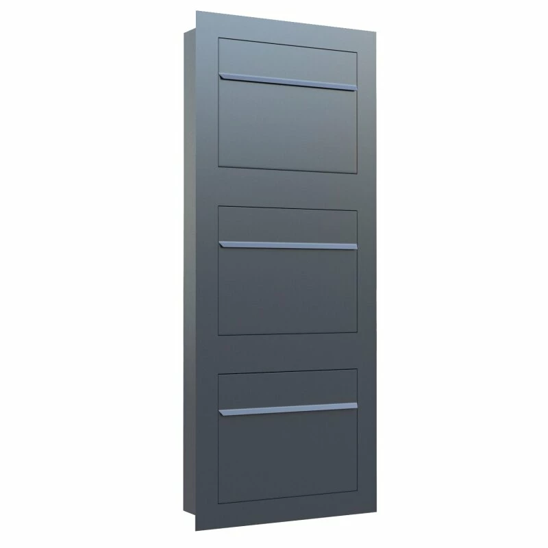 Einbaubriefkasten Hochkant aus Edelstahl RAL 7016 anthrazit grau 3 Parteien