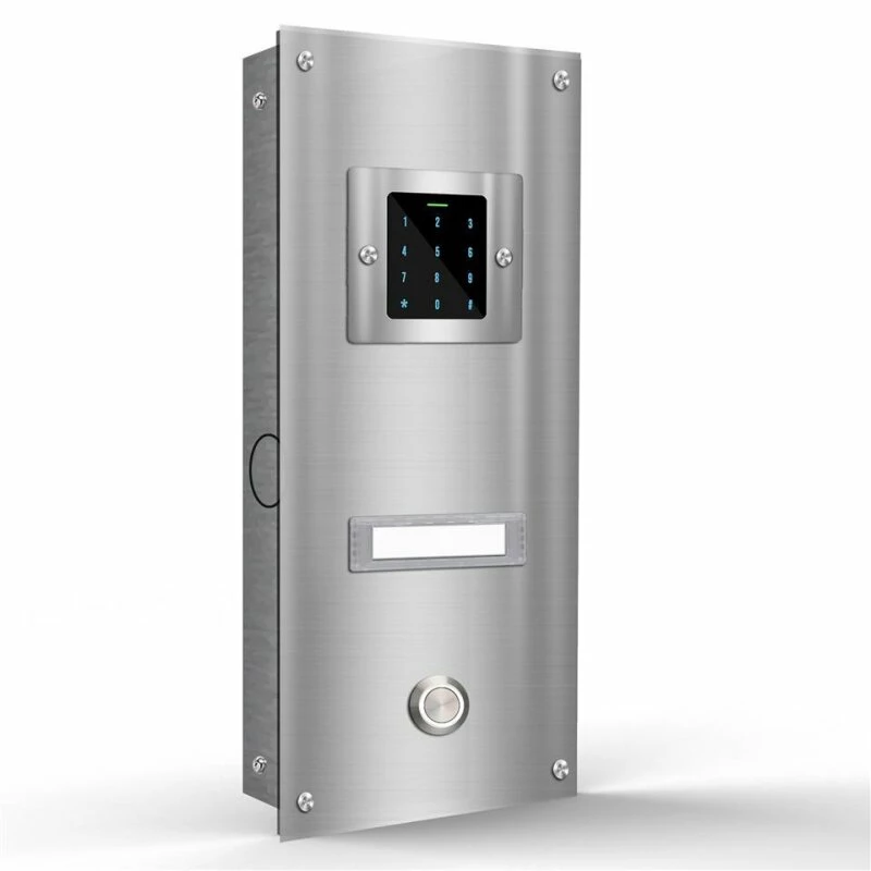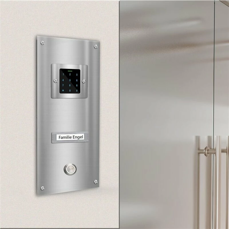 Edelstahl Einfamilien Türklingel mit Codeschloß und Beschriftungsfeld – 5 RFID Keys