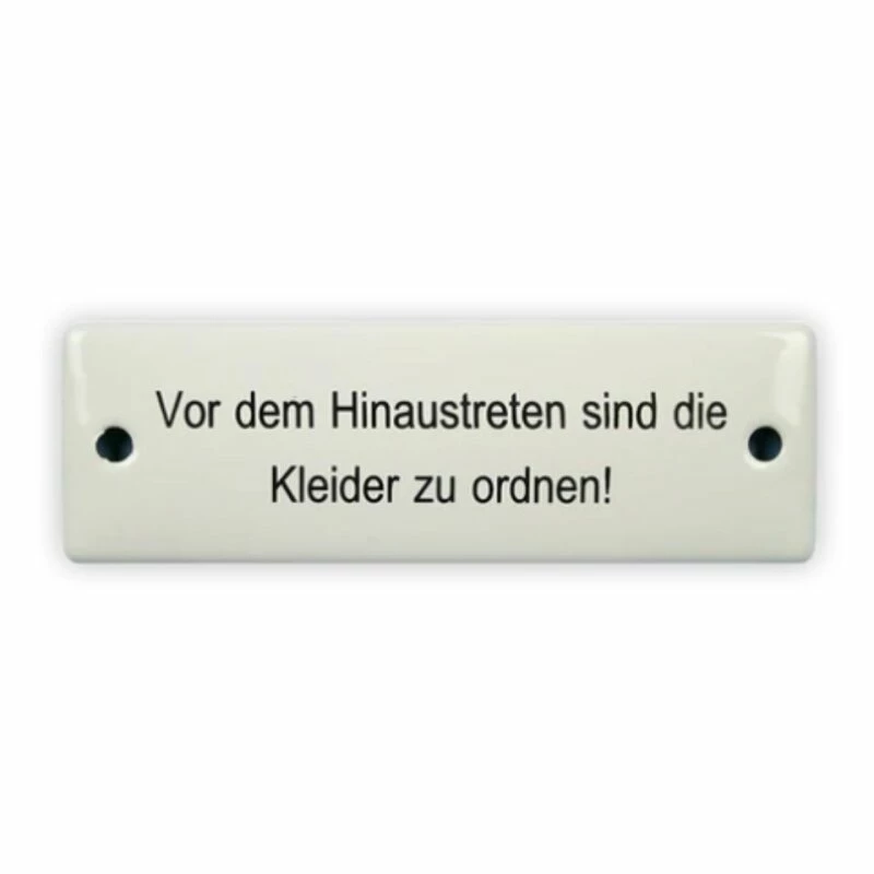 Emailschild 12,5 x 4 cm, Vor dem Hinaustreten sind die Kleider zu ordnen!