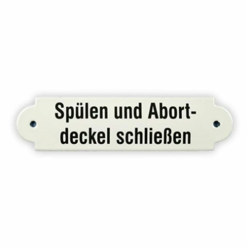 Emailschild 20 x 5 cm, Spülen und Abortdeckel schließen