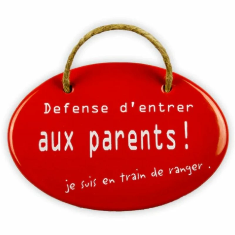 Emailschild oval, 10,5 x 7 cm, Defense d’entrer aux parents