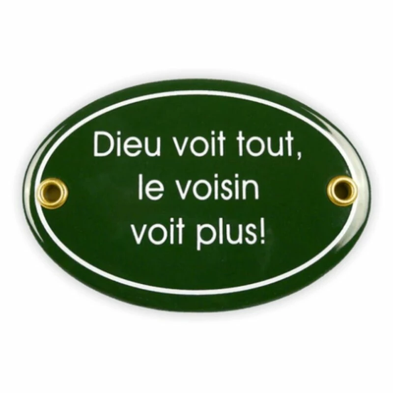 Emailschild oval, 10,5 x 7 cm, Dieu voit tout