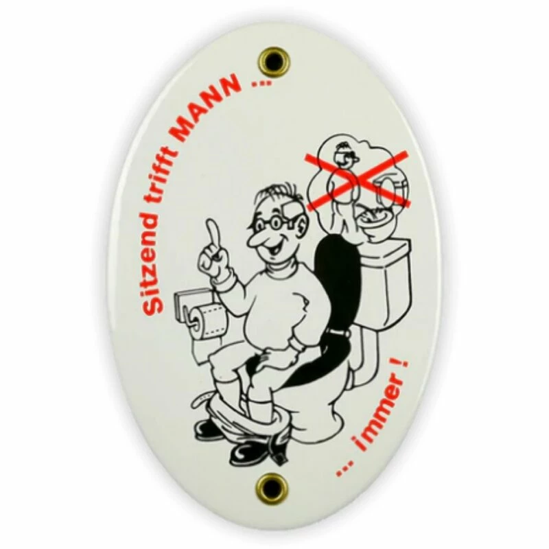 Emailschild oval, 10 x 15 cm, Sitzend trifft MANN immer