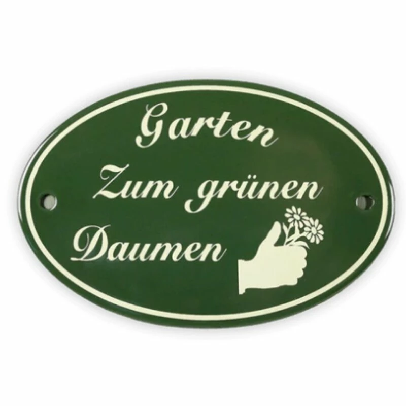 Emailschild oval, 15 x 10 cm, Garten Zum grünen Daumen