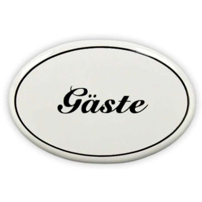 Emailschild oval, 6 x 4 cm, Gäste, zum Kleben