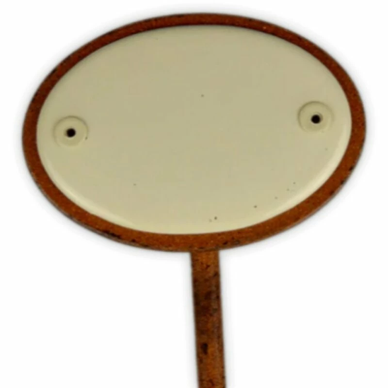 Emailschild oval, 6 x 4 cm, Kräuternamen mit Erdspieß 25 cm