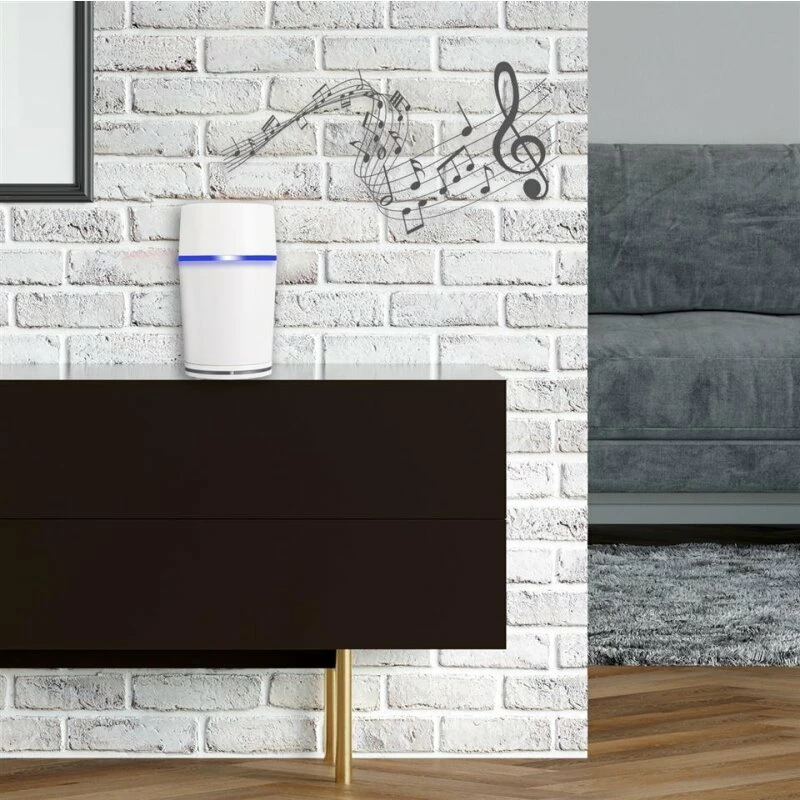 Per BLUETOOTH® mit dem Smartphone gekoppelt wird der Funkgong CALIMA 800 zum tragbaren Lautsprecher, der überall im Haus Ihre Musik spielt. Sobald es an der Tür klingelt, wird die Musik unterbrochen und der Türklingelton abgespielt. Anschließend spielt die Musik weiter.