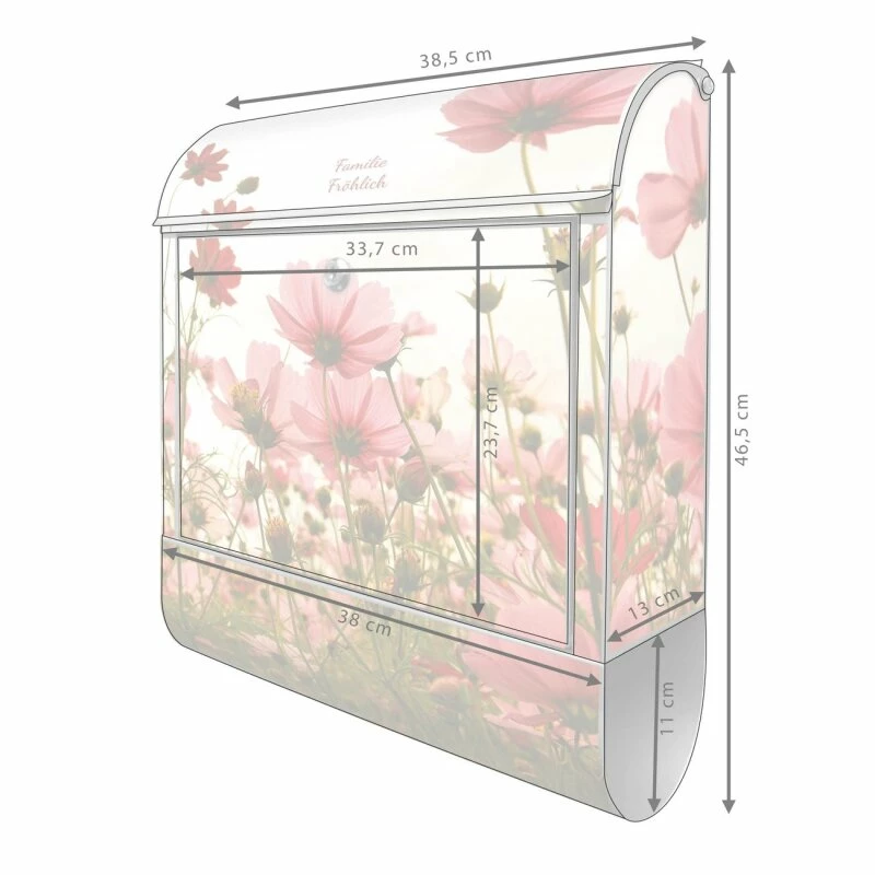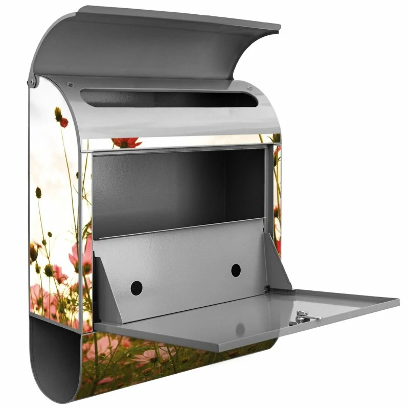 Der Postkasten mit Motiv Schmuckkörbchen hat ein sehr ansprechendes und ausgefallenes Design, damit entlocken Sie Ihren Nachbarn und dem Postboten ein Lächeln. Heben Sie Sich von der tristen grauen Masse ab, ohne auf Funktionalität zu verzichten.