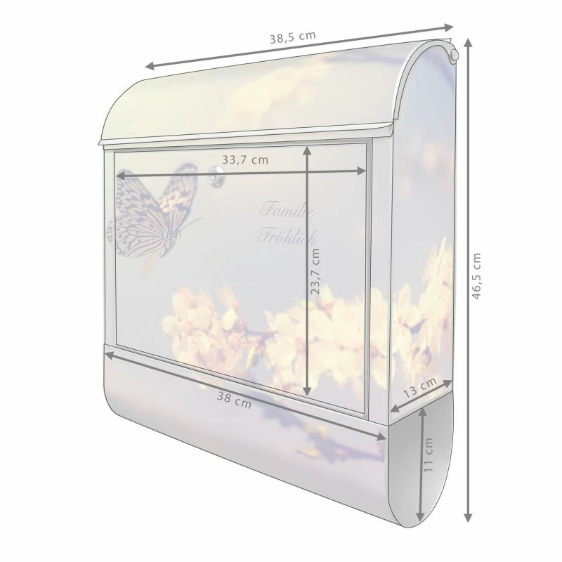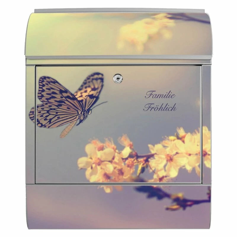 Der Postkasten mit Motiv Tag Im Mai hat ein sehr ansprechendes und ausgefallenes Design, damit entlocken Sie Ihren Nachbarn und dem Postboten ein Lächeln. Heben Sie Sich von der tristen grauen Masse ab, ohne auf Funktionalität zu verzichten.