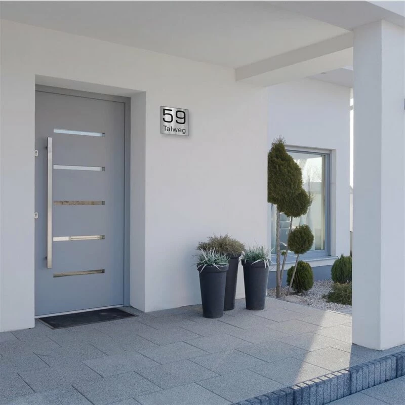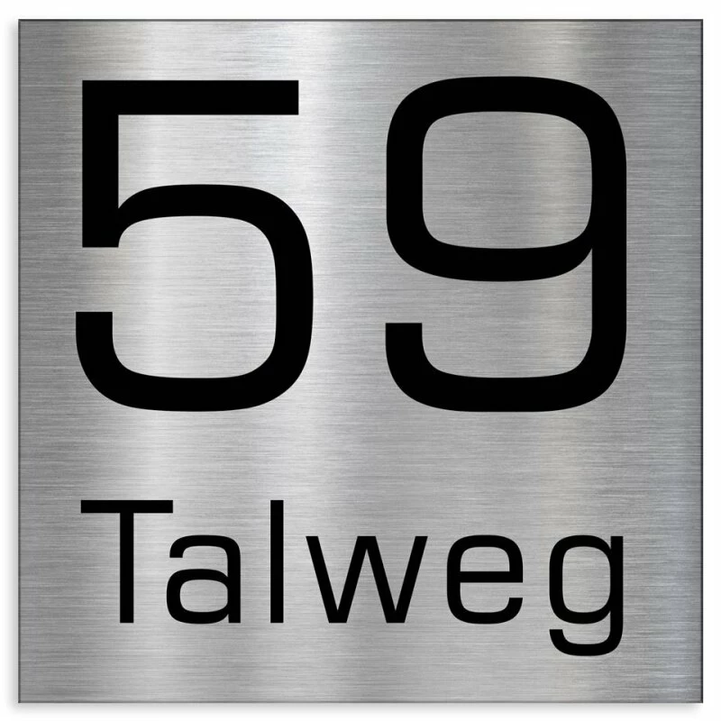 Edelstahlschild mit Hausnummer und Straßennamen in 3 Größen