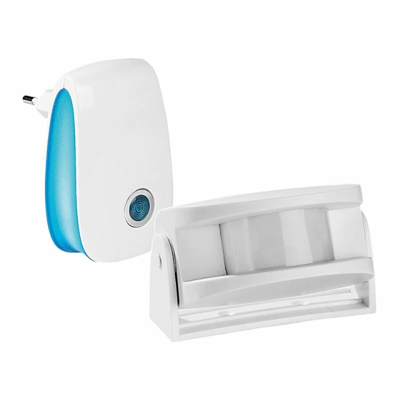Funkklingel-Set: Bewegungssensor zur festen Anbringung, die mobile Klingel stecken Sie in eine beliebige Steckdose