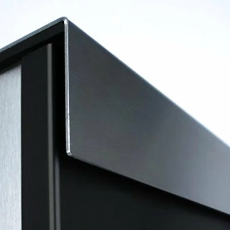 Das Besondere am Briefkasten glasnost.color.black: Die edle Kombination von Edelstahl und schwarz. Die Front schließt bündig mit dem Gehäuse ab.