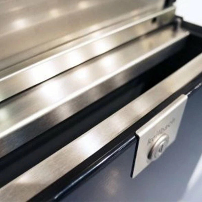 Material: gebürsteter Edelstahl, pulverbeschichtete Front (schwarz, RAL 9017)