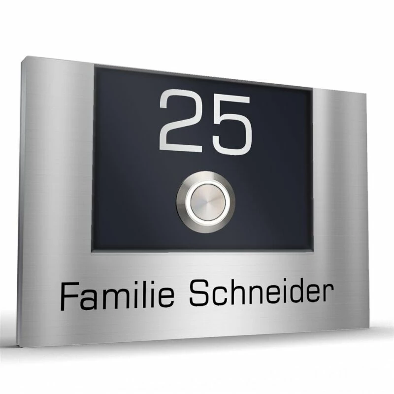 Die Oberfläche der Klingelplatte ist fein geschliffen in Längsstruktur.
