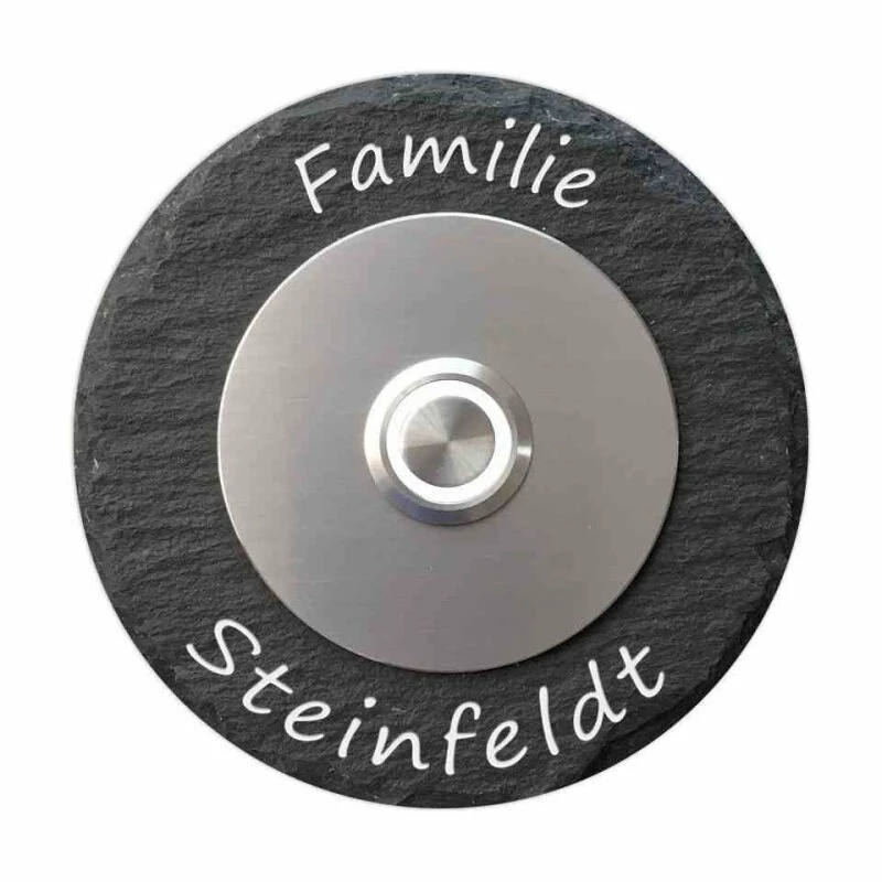 Klingelplatte aus Naturschiefer Durchmesser 100mm Rund mit Edelstahlronde