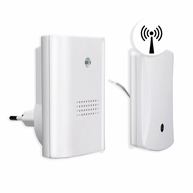 Ihr eigener Gong ist zu leise ? Bei diesem Funkklingel Weiterleitungs-System ist es möglich Ihr Klingelsignal per Funk an den Funkklingel Empfänger weiterzuleiten. Schließen Sie den Konverter einfach an Ihren bestehenden Gong an. Klingelt jetzt jemand an der Haustüre, sendet der Konverter per Funk zusätzlich das Signal an den Empfänger.
