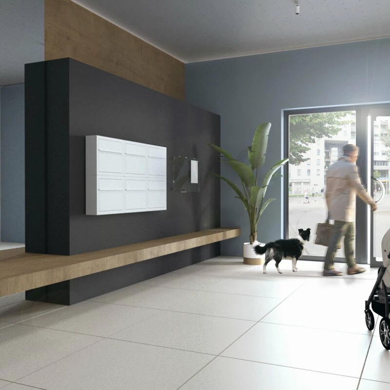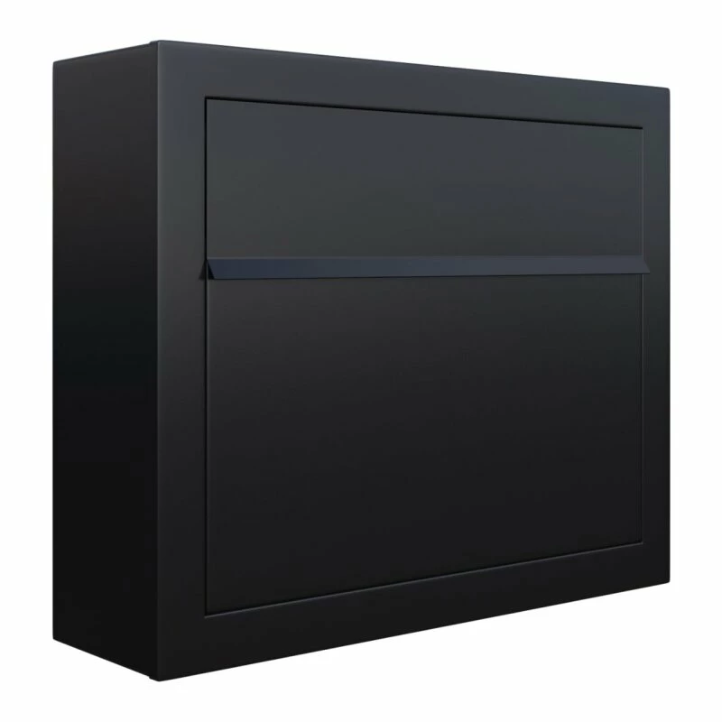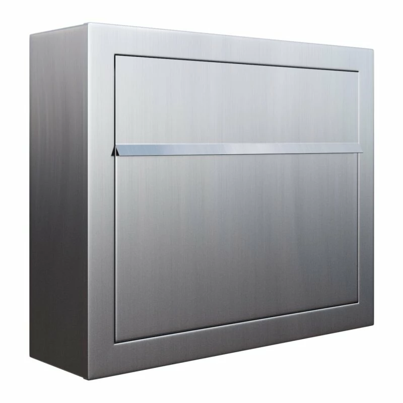 Der Briefkasten kann sowohl alleinstehend als auch in einer Briefkastenanlage (Aufputz) montiert werden. Hierbei kann er sowohl neben-, als auch untereinander angeordnet werden. Einwurf und Entnahme erfolgen bei diesem Modell von vorne über die Einwurfklappe und eine aufgesetzte Frontklappe. Das Schloss befindet sich witterungsgeschützt unterhalb der Einwurfklappe, wodurch auch das schlichte, elegante Design nicht unterbrochen wird.