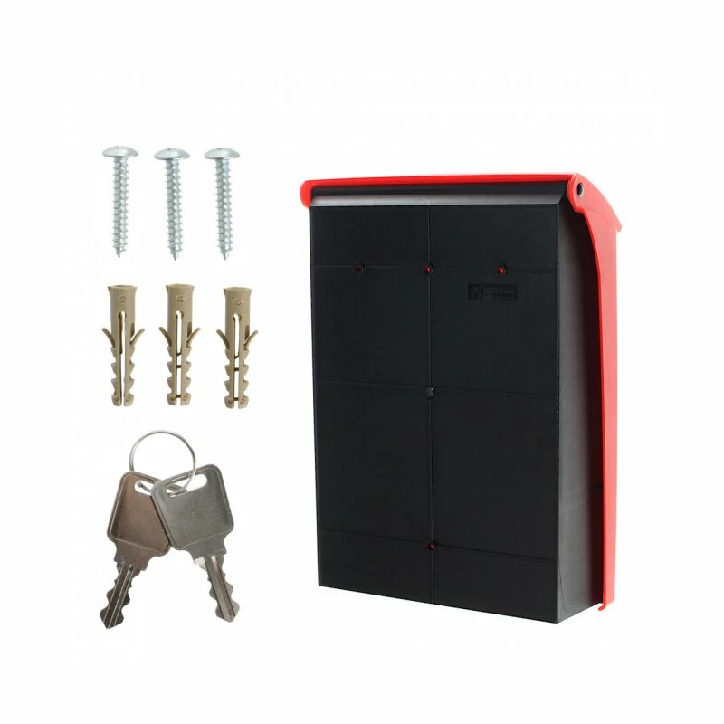 Kunststoff Briefkasten Posta Schwarz / Rot
