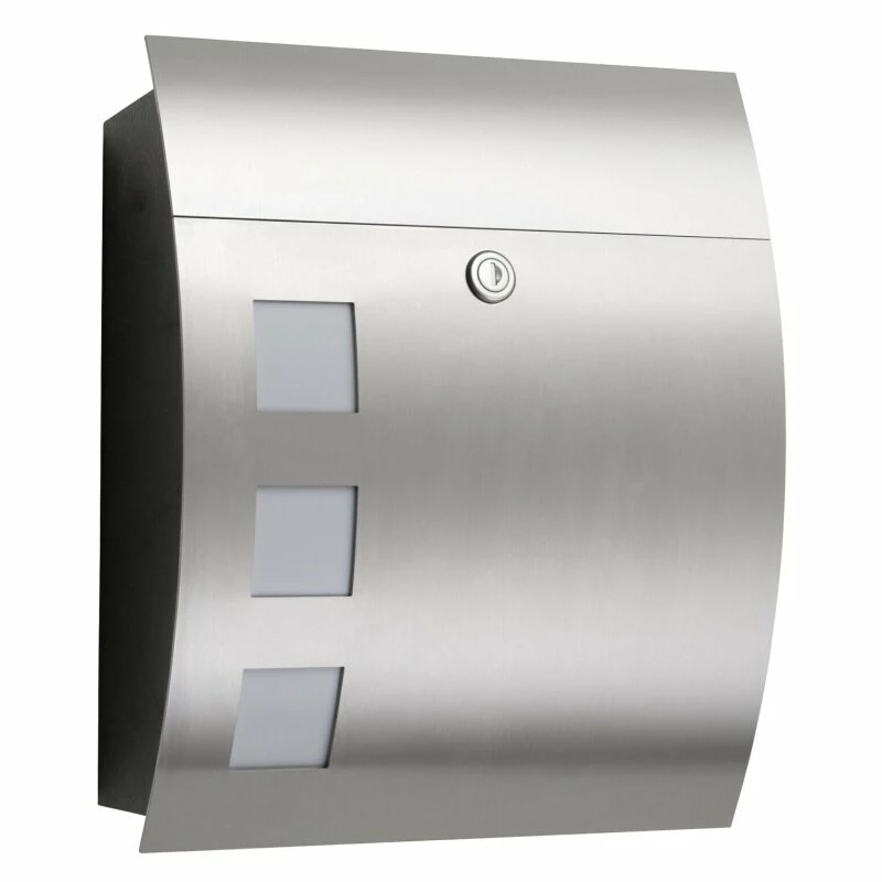 CMD Edelstahl Briefkasten gebogen mit 3 Sichtfenster aus Opalglas