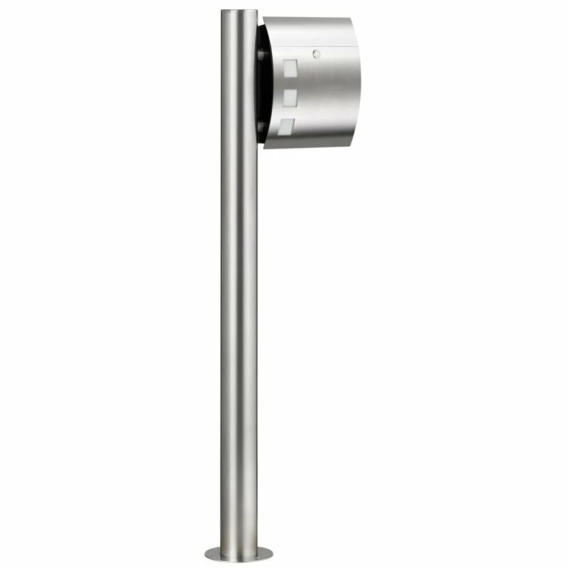 Massiver CMD Edelstahl Briefkasten gebogen mit Standsäule