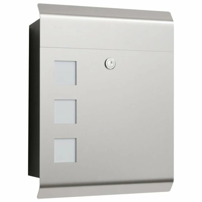 Massiver CMD Edelstahl Briefkasten mit 3 Sichtfenster aus Opalglas