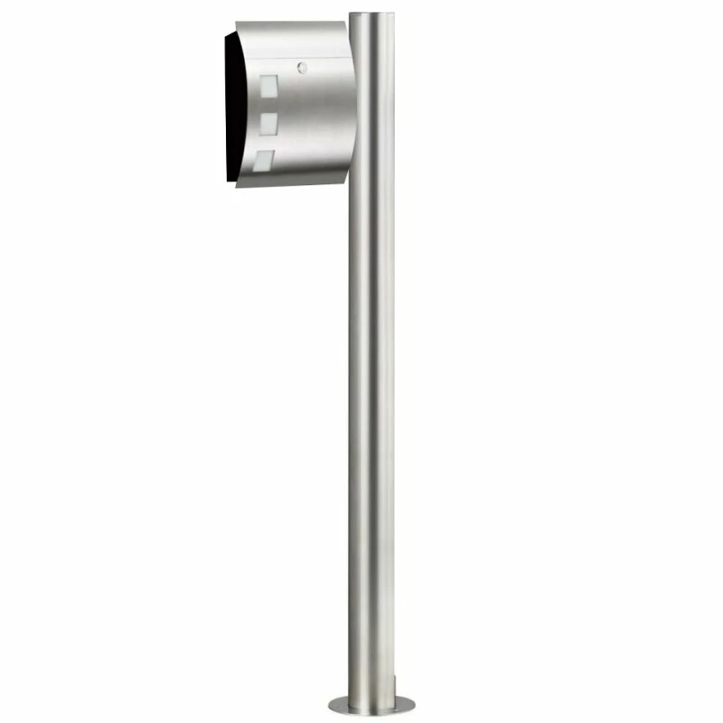 Massiver CMD Edelstahl Briefkasten gebogen mit Standsäule