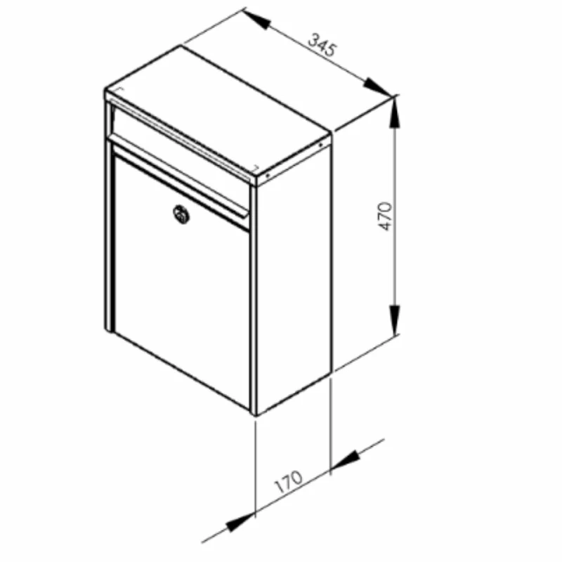 Der Briefkasten besteht aus verzinktem Stahl und ist mit einem integrierten Namensschild ausgestattet.