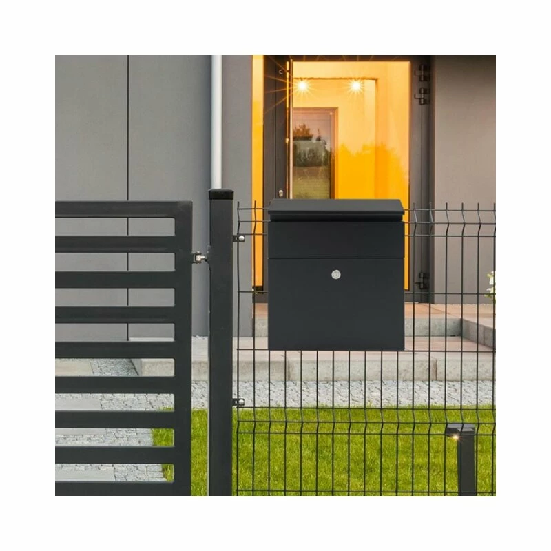 Der Briefkasten besteht aus verzinktem pulverbeschichtetem Stahl in Basaltgrau. Die Front ist mit einem robusten MEFA Sicherheitsschloss ausgestattet.